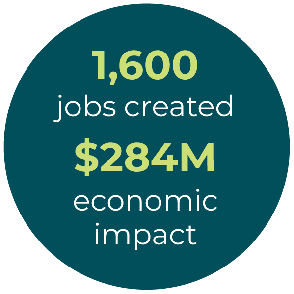 Driving breakthrough research, creating 1,600 jobs, and generating $284M in economic impact for the region.